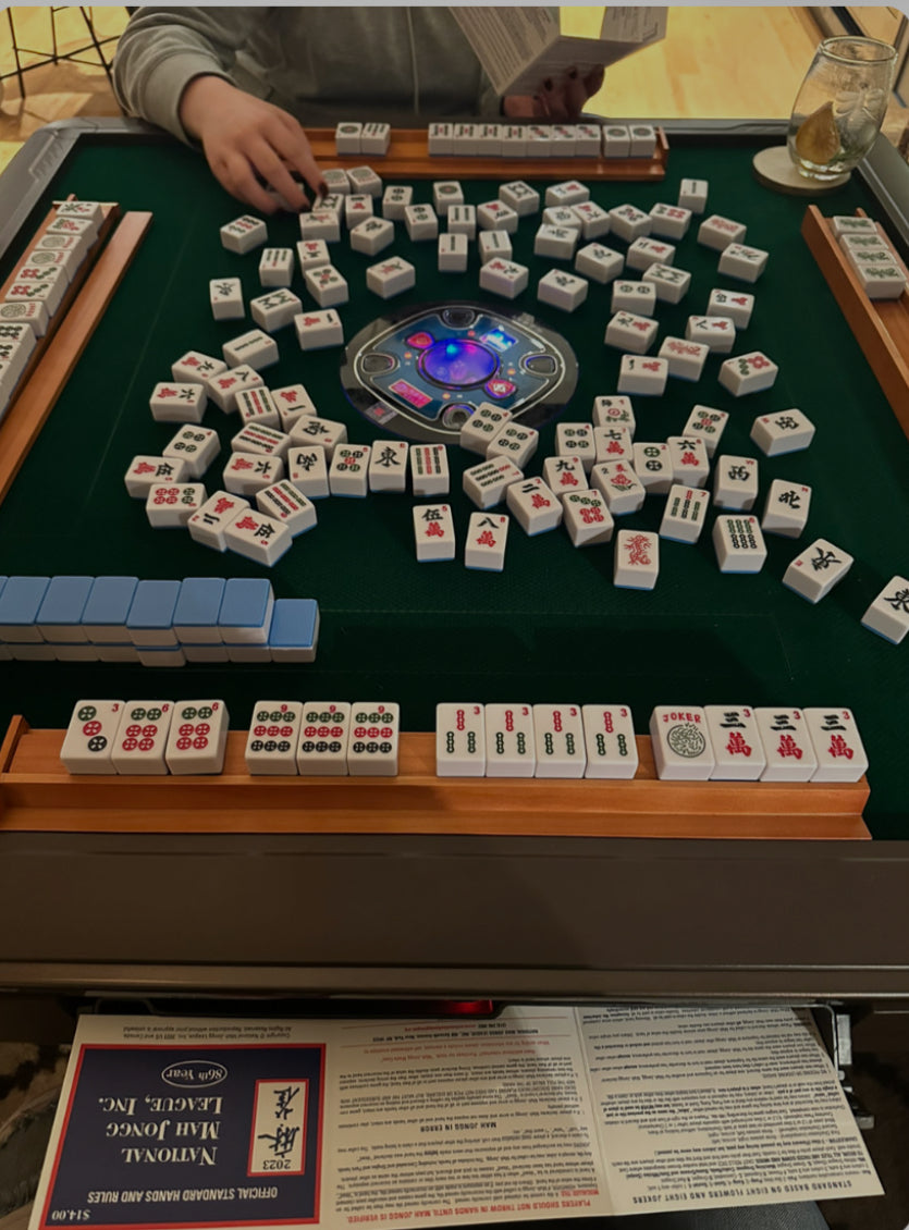 You will play independently on our automatic mahjong table that sorts and stacks the tiles between rounds. It is both magical and extremely satisfying.