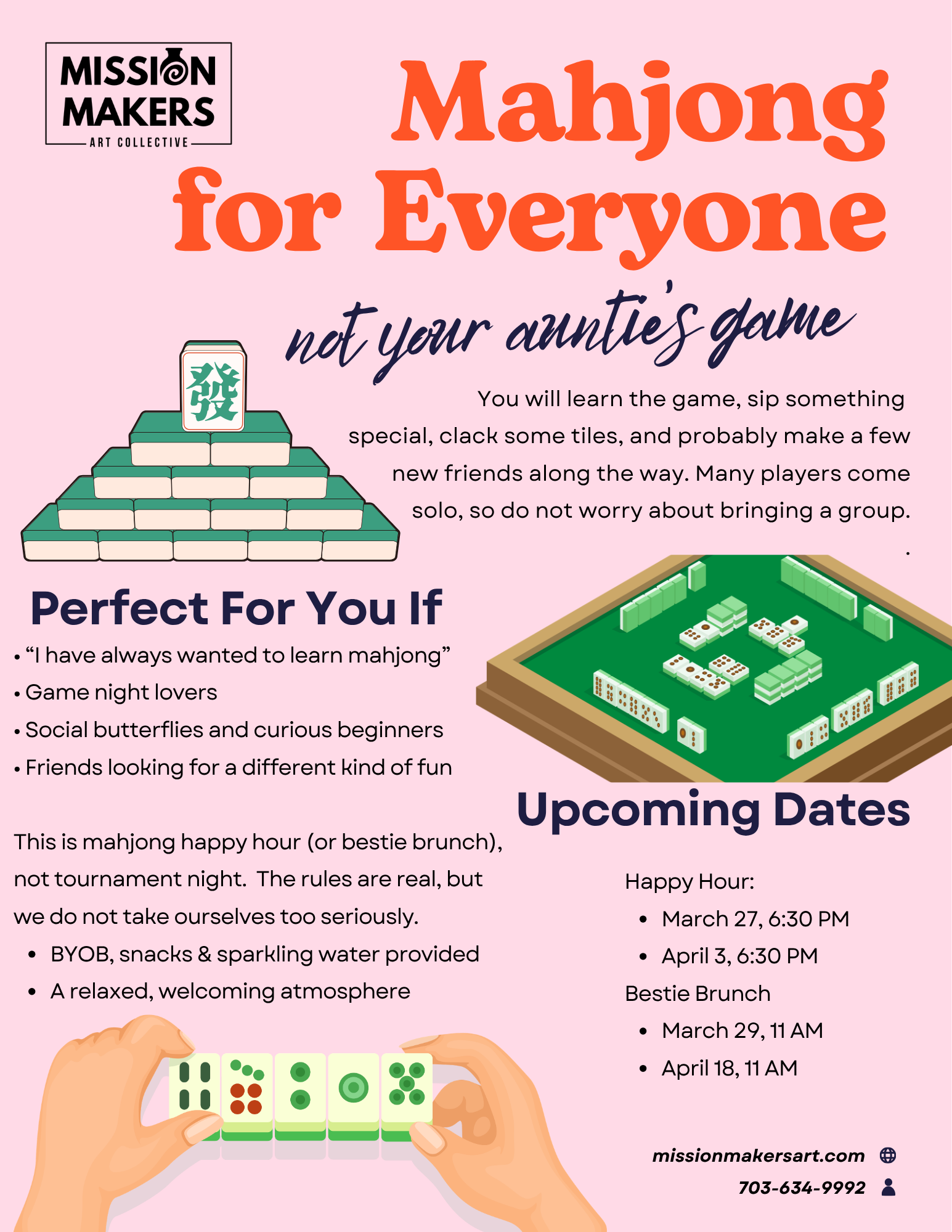 You will learn the game, sip something special, clack some tiles, and probably make a few new friends along the way. Many players come solo, so do not worry about bringing a group.
