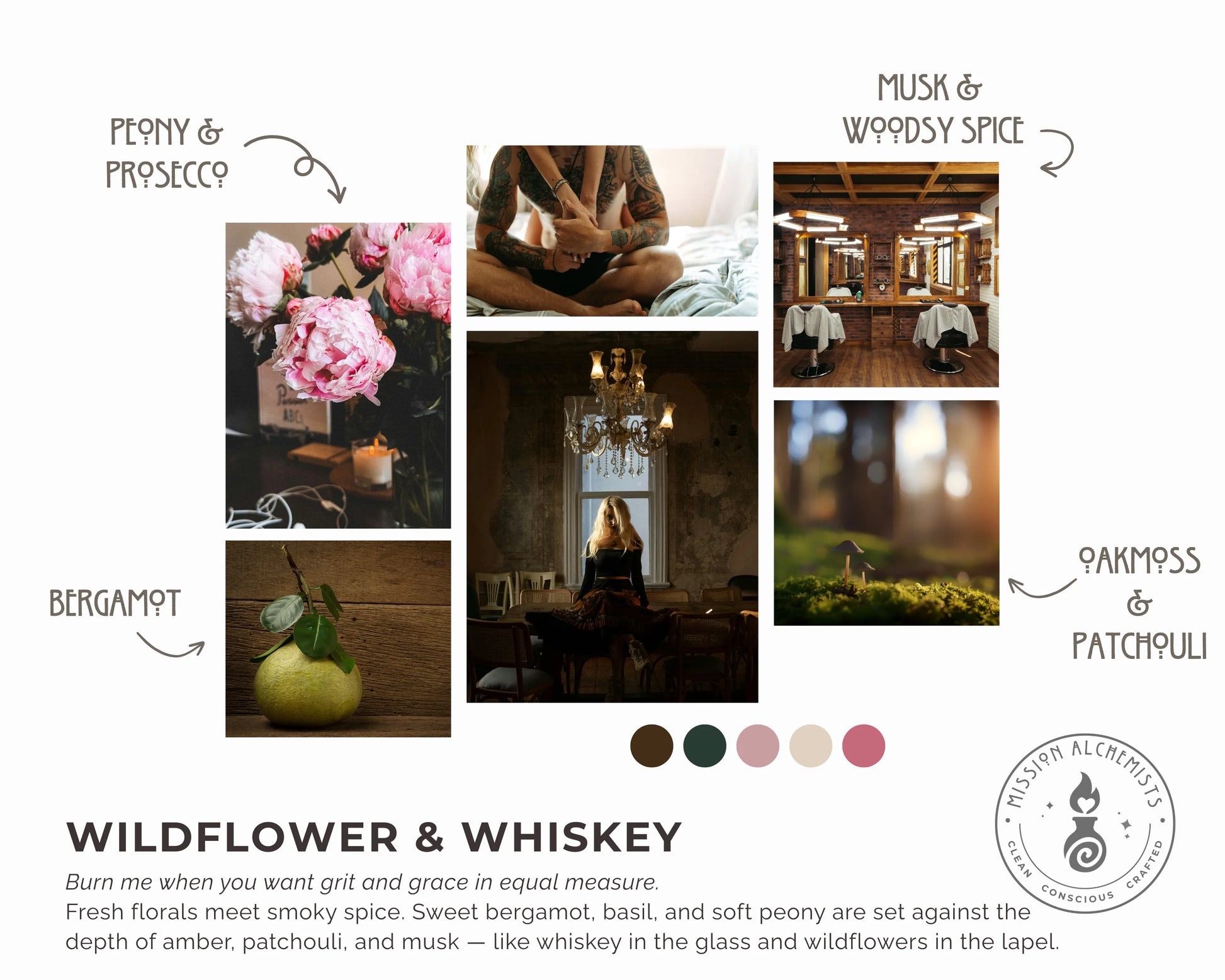 What does it smell like? Fresh florals meet smoky spice. Sweet bergamot, basil, and soft peony are set against the depth of amber, patchouli, and musk — a rugged bouquet, like whiskey in the glass and wildflowers in the lapel.